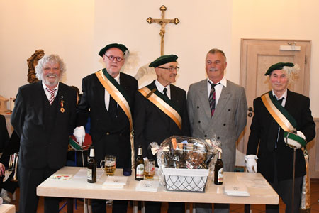 Bildnachlese Sie zeigt das Präsidium mit dem KV-Vorsitzenden Kb Christian Paulus (links) mit den Chargen Hans-Emil Woll (KStV Germania Hohentwiel Freiburg, Gerhard Peitz (KStV Kurpfalz Mainz) dem Festredner NATO-Offizier Dipl. Kfm. Alexander Paulus und Werner Schmitt (KStV Pascalia Landau.